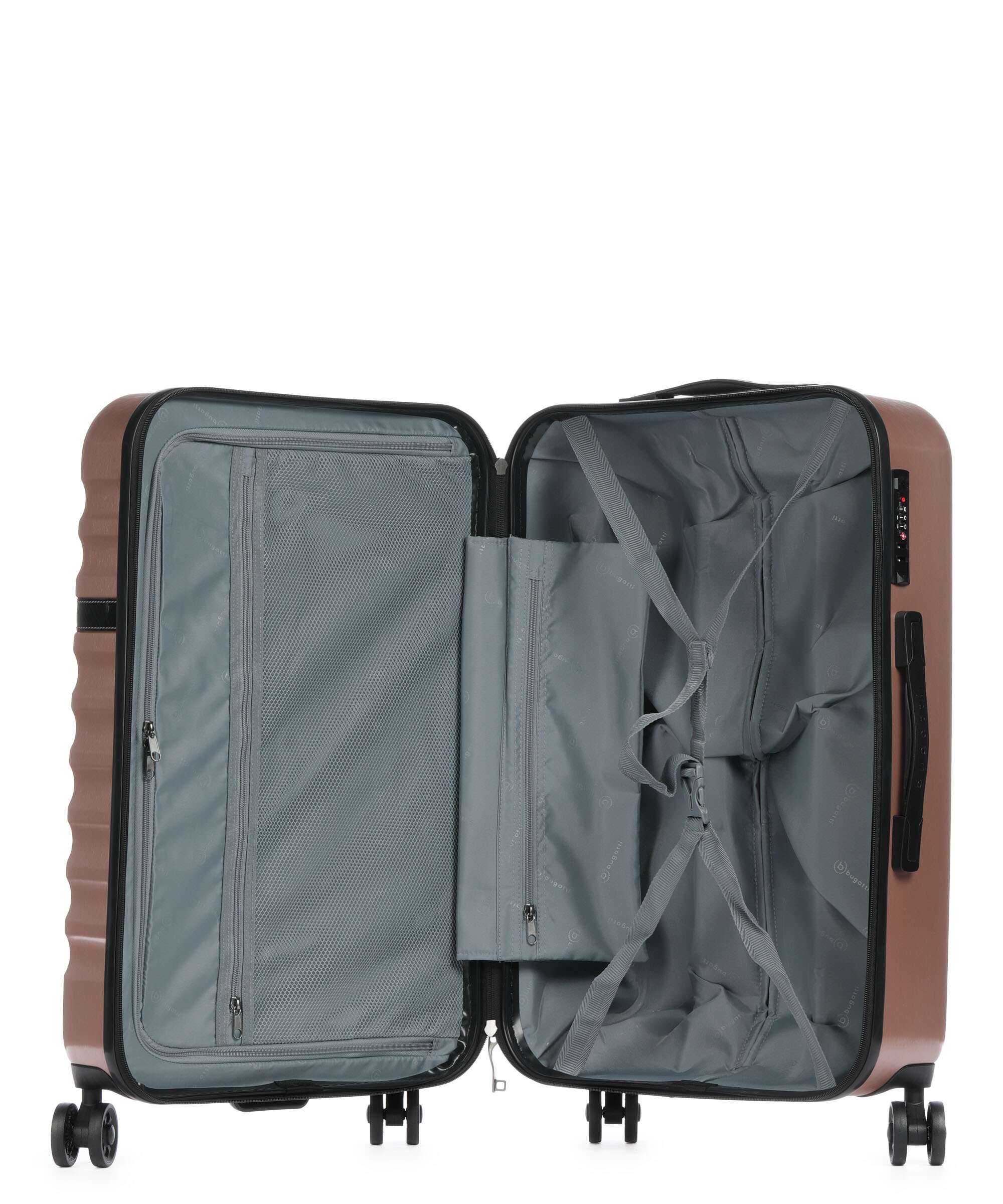 If durability is your priority, a hardside spinner (4 wheels) is the right choice. These models are commonly made from polycarbonate or ABS plastic, making them resilient and impact-resistant. Especially on extended trips or when transporting fragile belongings, a sturdy hardside spinner offers optimal protection. Many models feature wheel brakes, ensuring your suitcase stays securely in place on trains or inclined surfaces. Thanks to their manoeuvrable design, they allow effortless steering in any situation – whether at the train platform, check-in counters or while storing them in overhead compartments. Some spinner models include additional features such as integrated TSA locks, expandable compartments, or thoughtfully arranged interiors with cross straps and mesh pockets. For frequent travellers seeking a durable and highly functional suitcase, hardside spinner models with four wheels are the perfect choice.